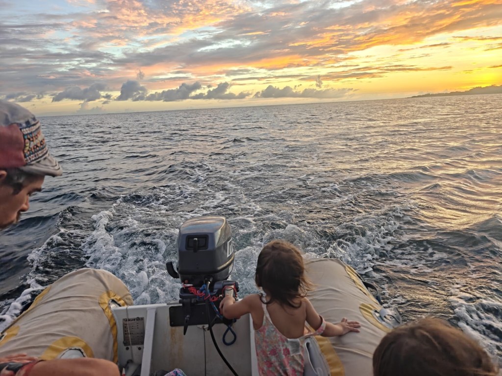 החלטנו שלא חוזרים לסירה, ממשיכים לשוט בדינגי אל תוך השמש השוקעת.