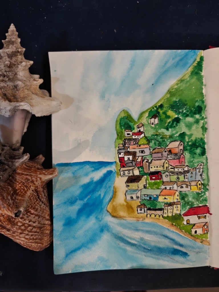 לפני שעזבנו הכנו מתנות לחברים, ברכות וציורים ומובייל עם צדפים, נוצות ואבנים.