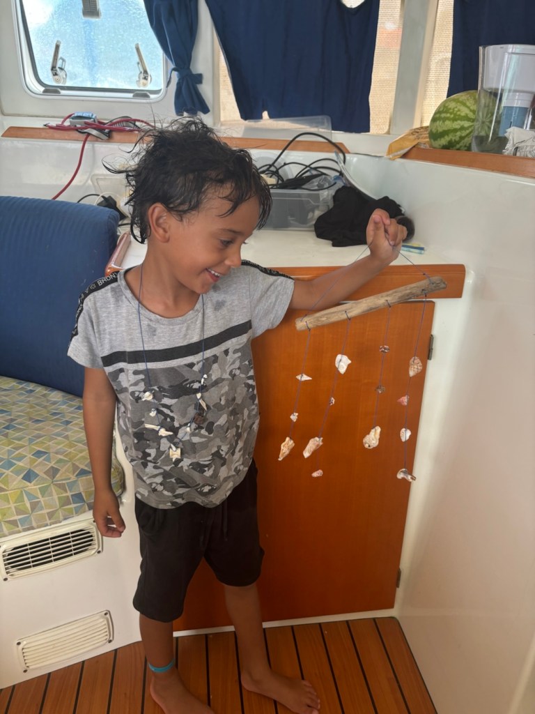 בזמן שאנחנו לומדים גלעד מעסיק את הילדים ומסדר את הסירה תוך כדי.