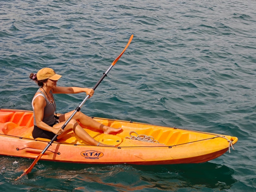 מהסירה חתרנו לחוף יחד כל המשפחה, קיקו מחליט על הקצב ואנחנו מבצעים