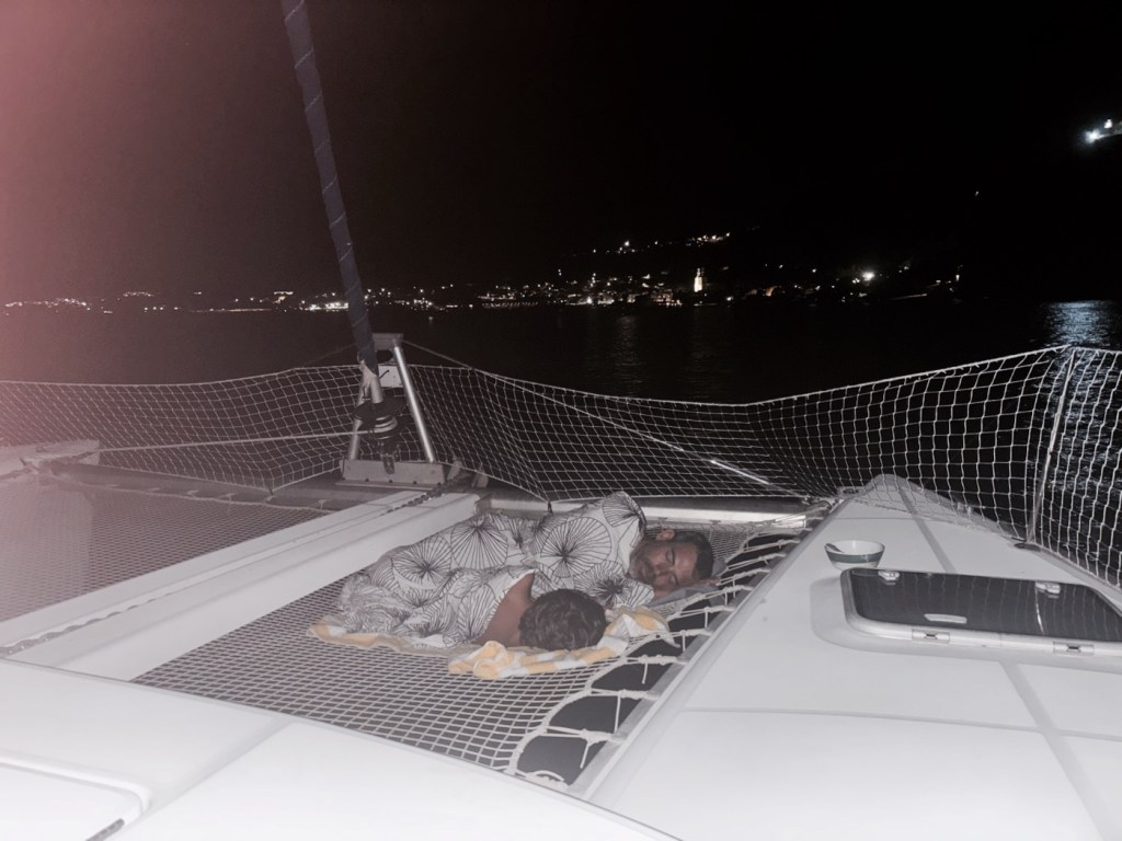פתאום ענבר מציץ מהחלון ומזמין אותנו לצאת החוצה לשכב על הרשת בחרטום איתו ועם אבא, לצפות בכוכבים נופלים.