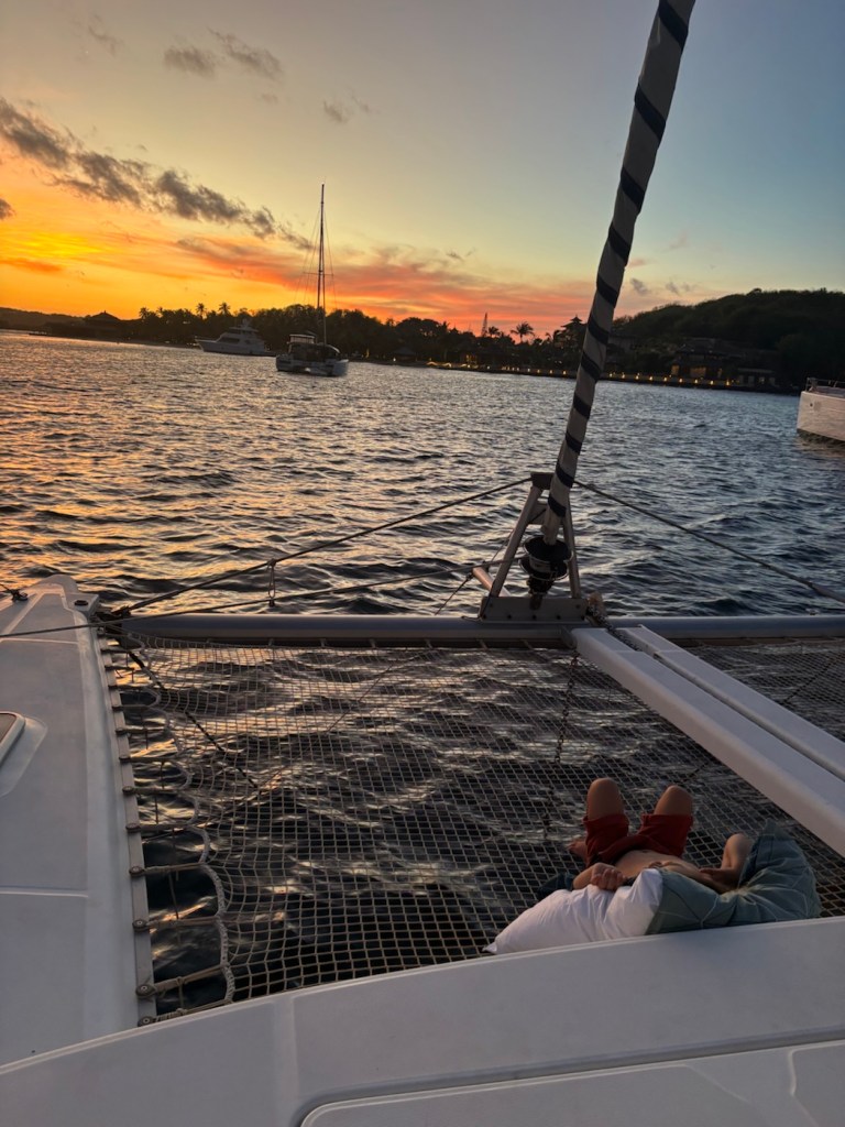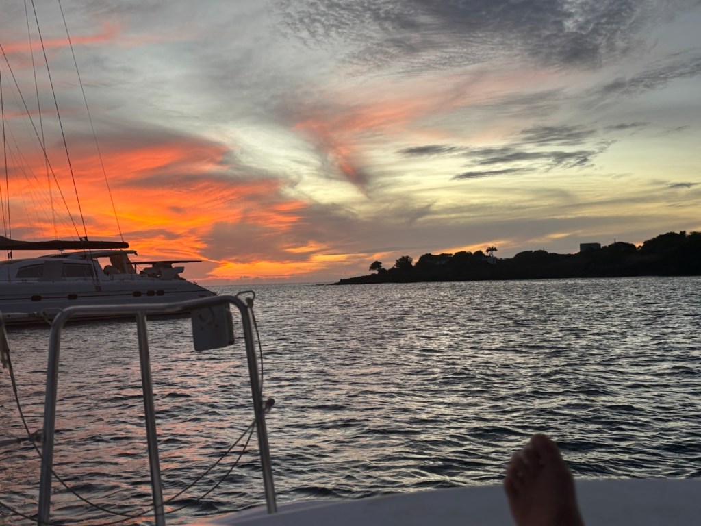 השמש בדיוק שקעה, התנגנה לה מוזיקת ג׳אז (שגיליתי שאהובה עליי בזמן הפלגות) , מאורי ונעמי שיחקו וצחקו בסלון, ענבר וגלעד משכו מהים דג רעמתן כחול יפייפה