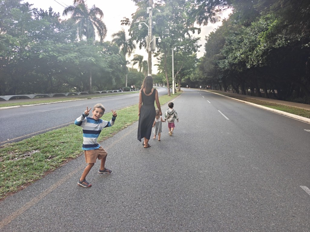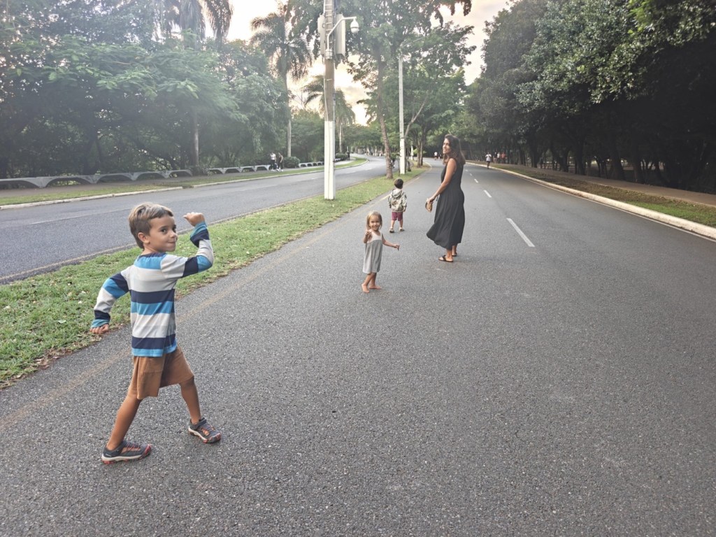 עצרנו בדרך בפארק ענק שמקיף אגם. הכבישים בו סגורים משני הצדדים מה שיצר תחושת יום כיפור בדרך נמיר בתל אביב ועשרות אנשים רכבו על רולר בליידס עם אוזניות גדולות וטייצים ורודים ואדומים. הרגשנו בתוך סצנה קסומה מסרט באייטיז.