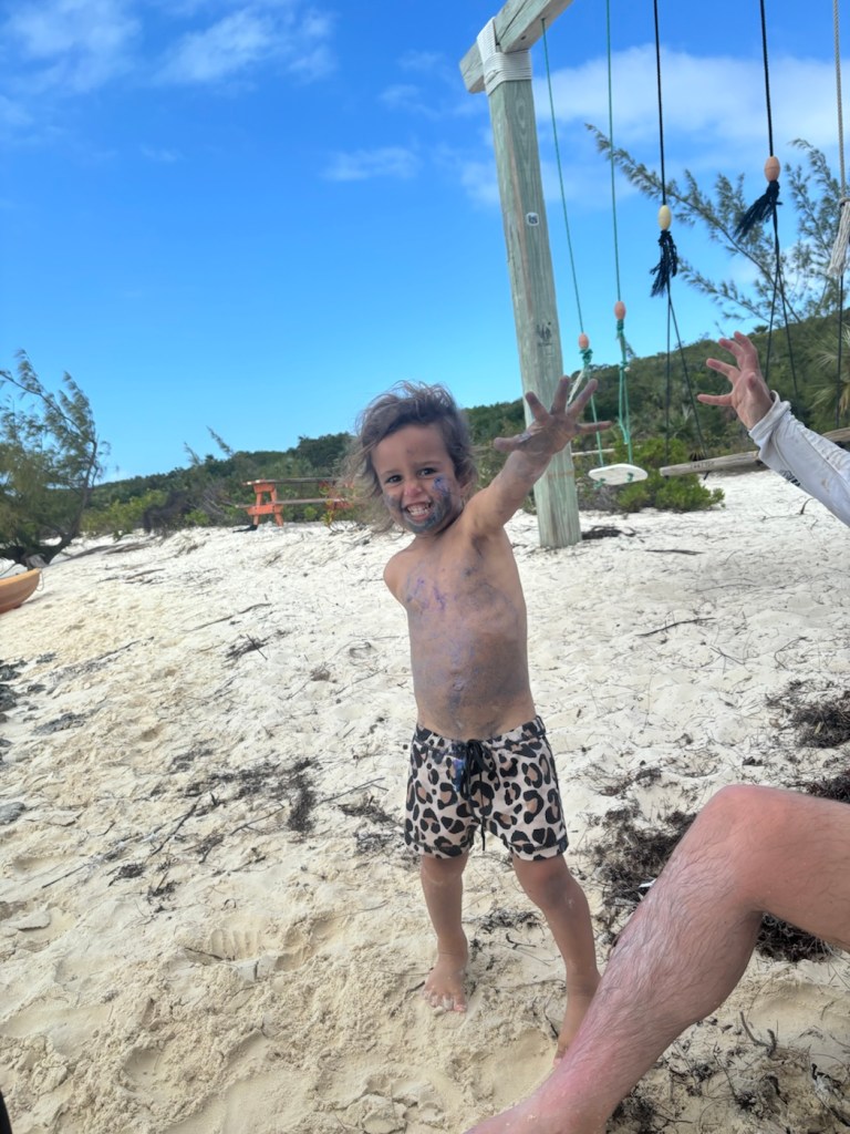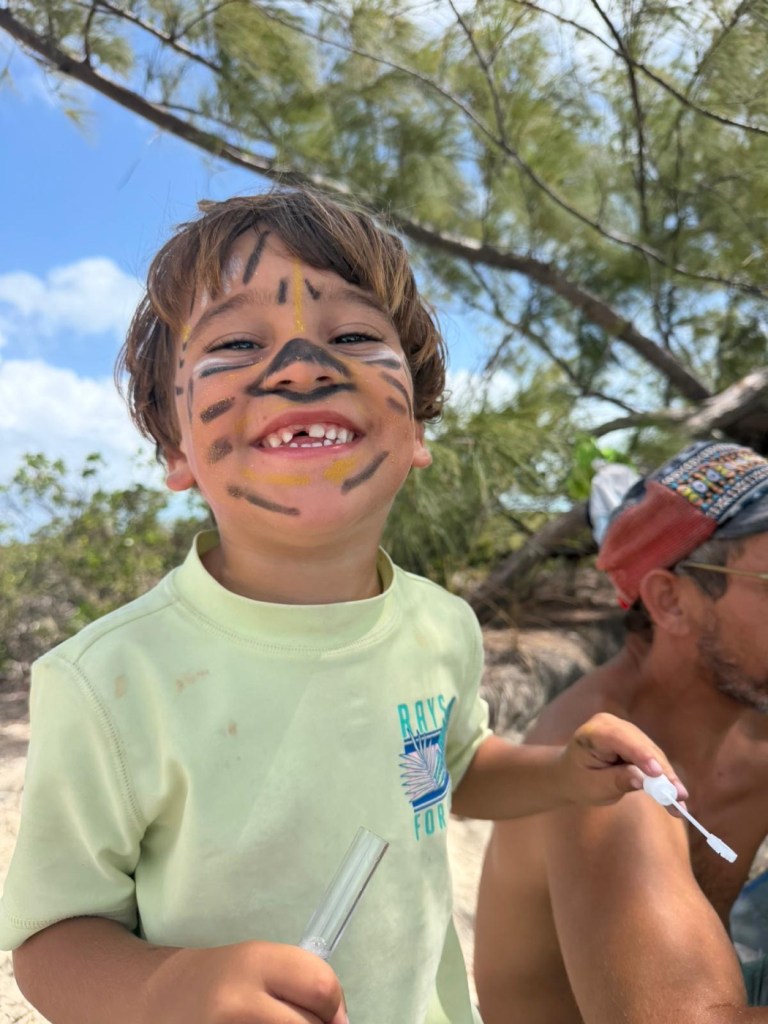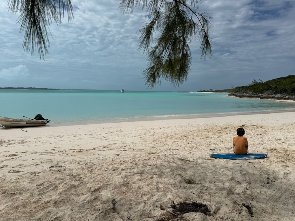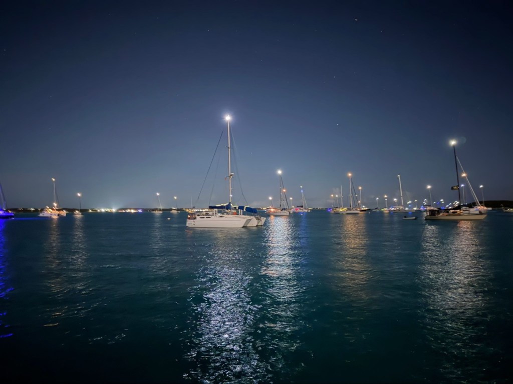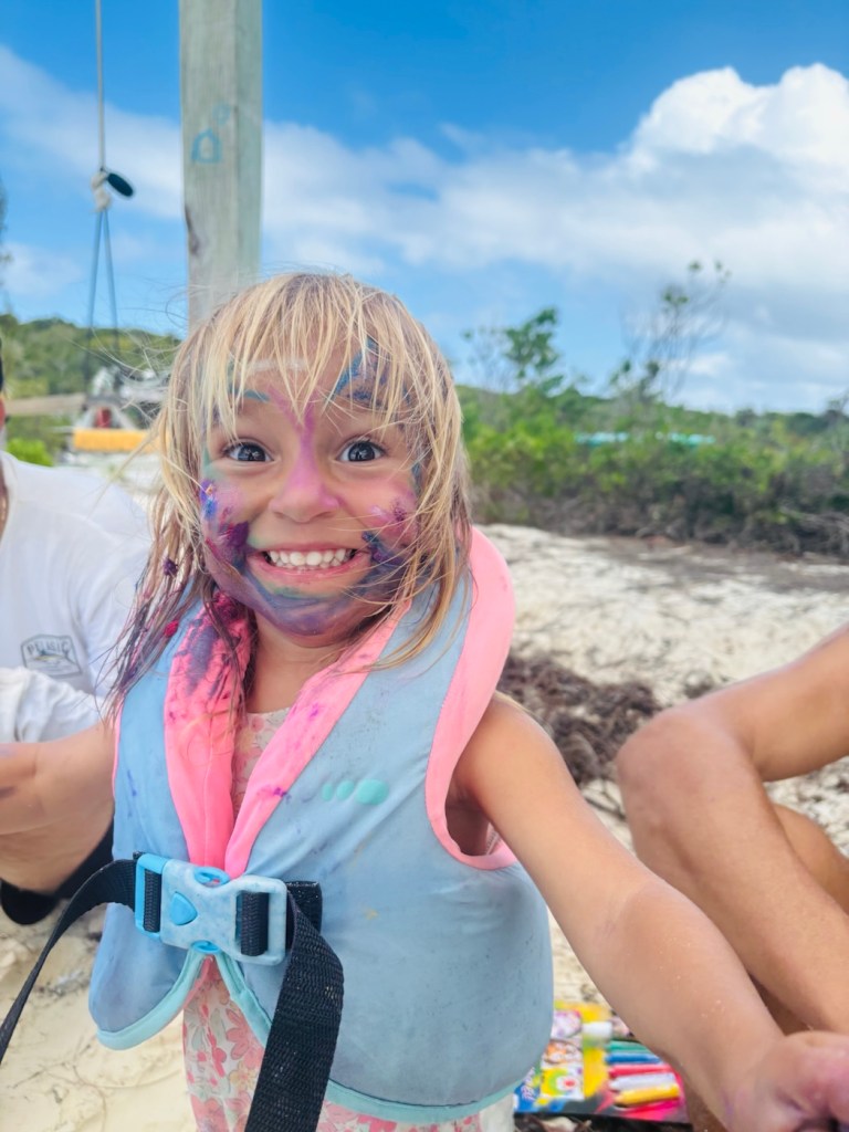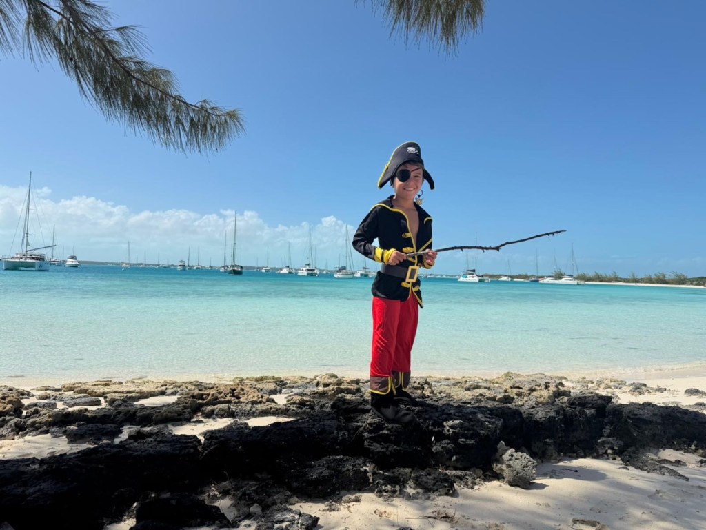 אלון, הילה ושני ילידהם המדהימים גור וצוף, עלו לדינגי שלנו מהרציף בג׳ורג׳ טאון בבאהמס
