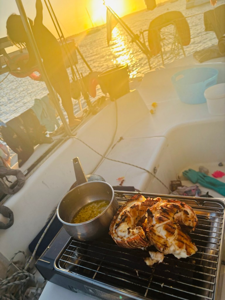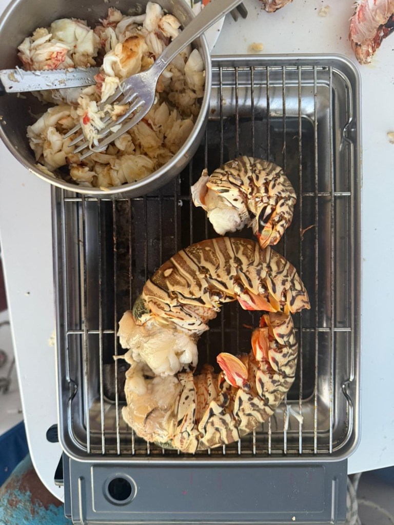 בתוך הסלע הסתתרו עשרות לובסטרים יפים ושמנמנים וכשחזרו שלפו לנו אותם אחד אחד עם החנית וכבר יכולתי להריח את החמאה והשום נספגים בבשר הצרוב.