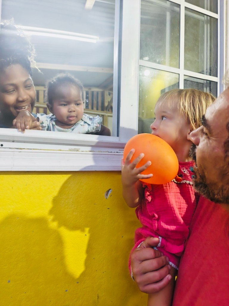 מלטפת אותה, צוחקת איתה ואומר ״יש לך שרשרת על הראש!״
